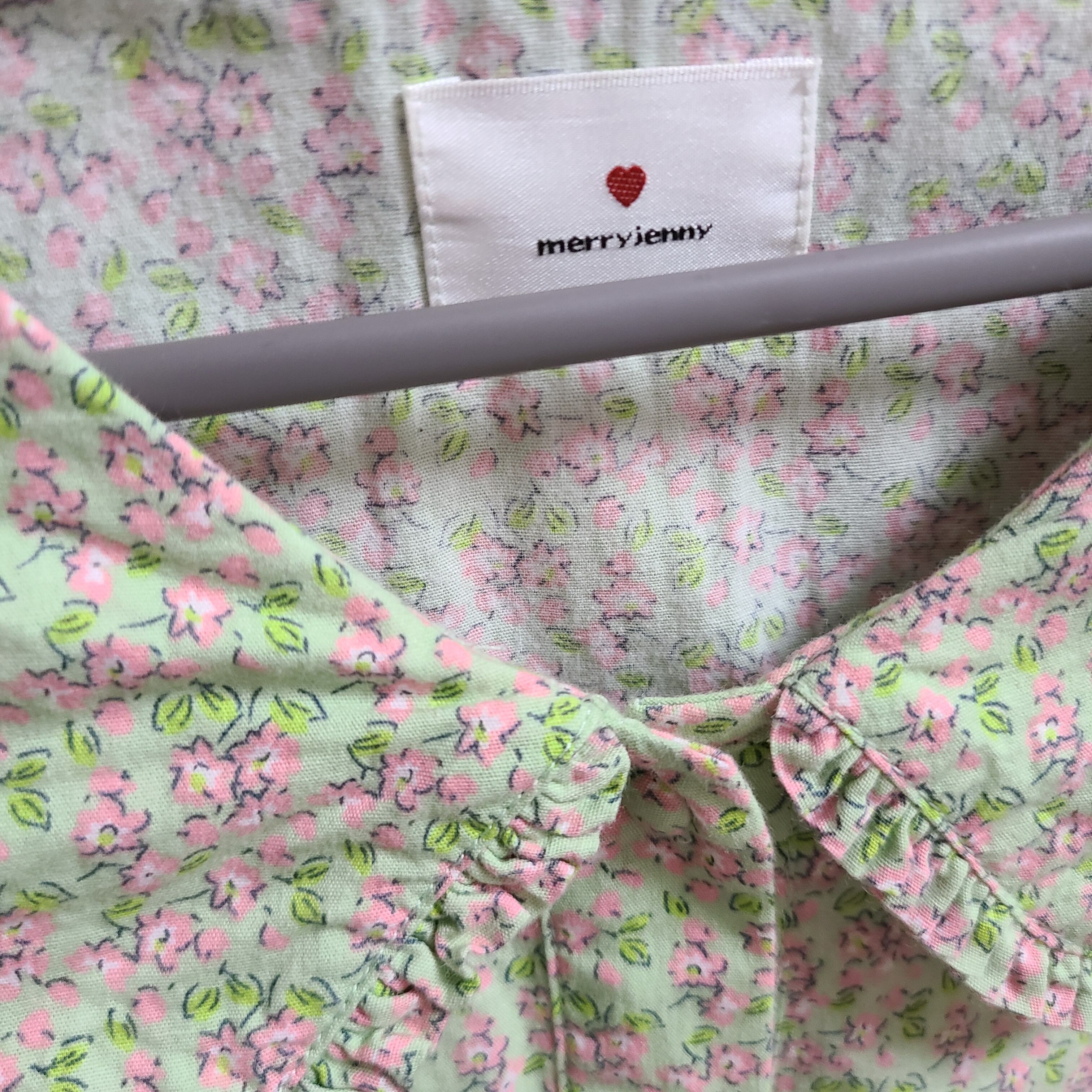 緑にピンクの花柄が可愛らしいワンピースです!